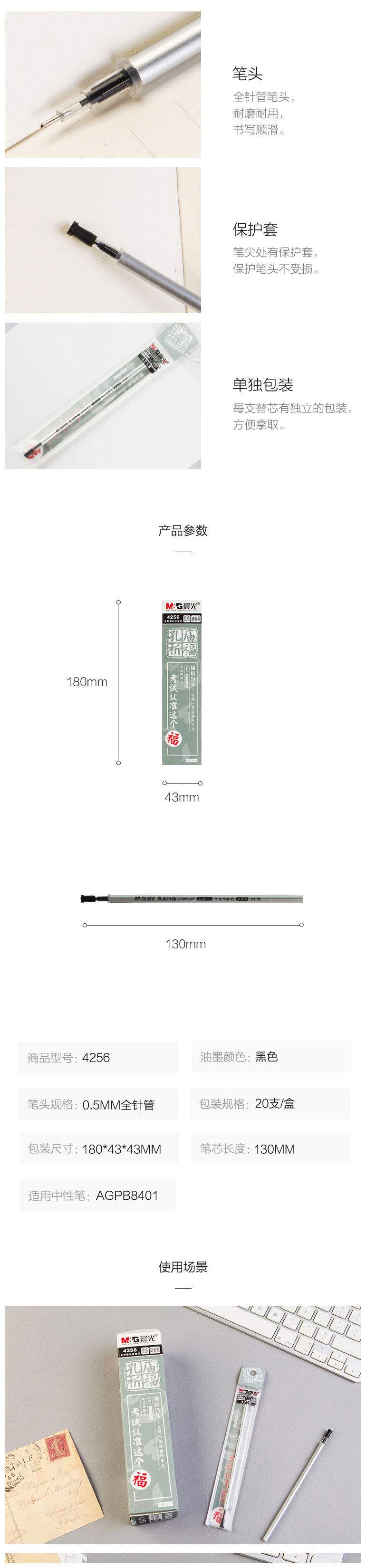 晨光 M&G 4256 中性替芯孔庙祈福 黑色0.5MM 20支/盒